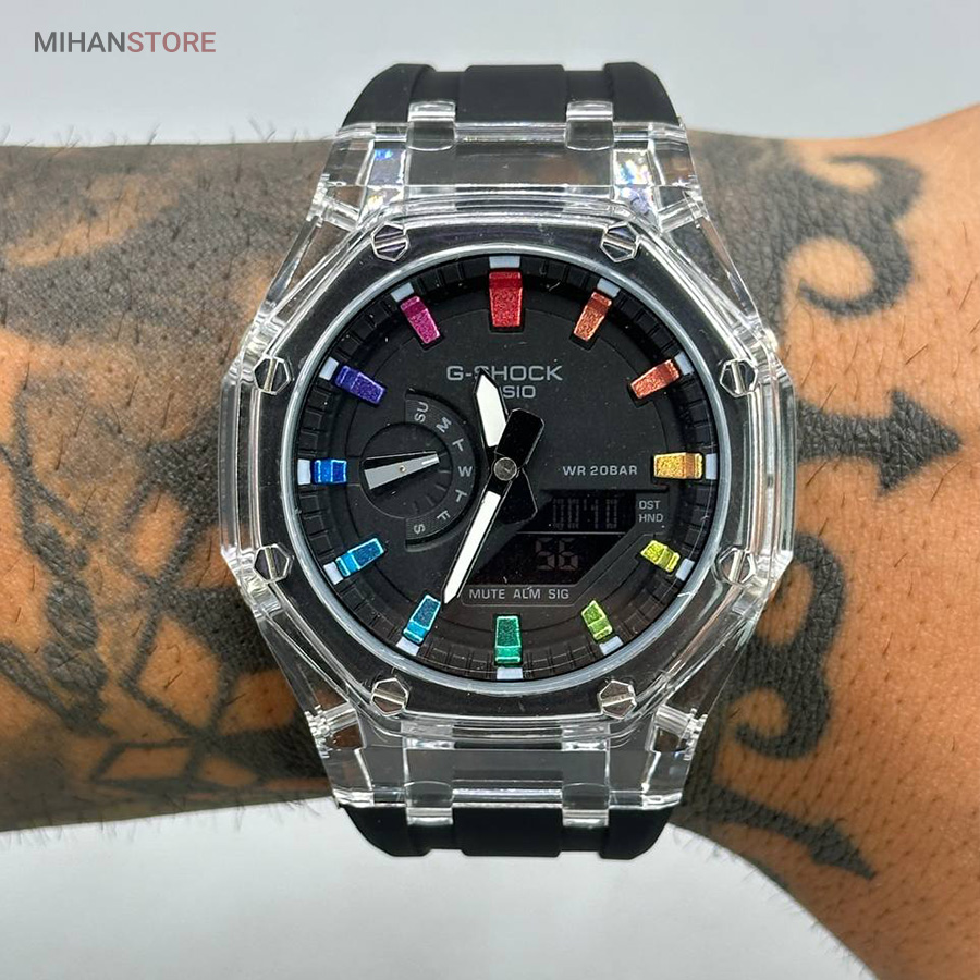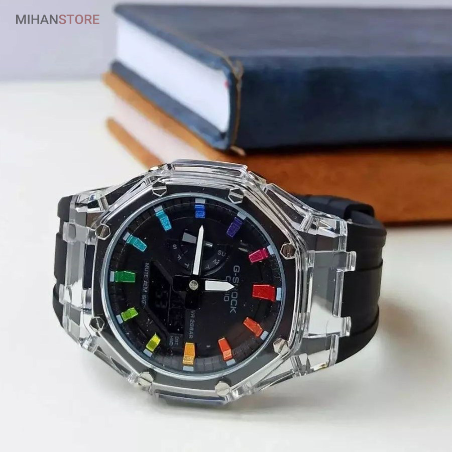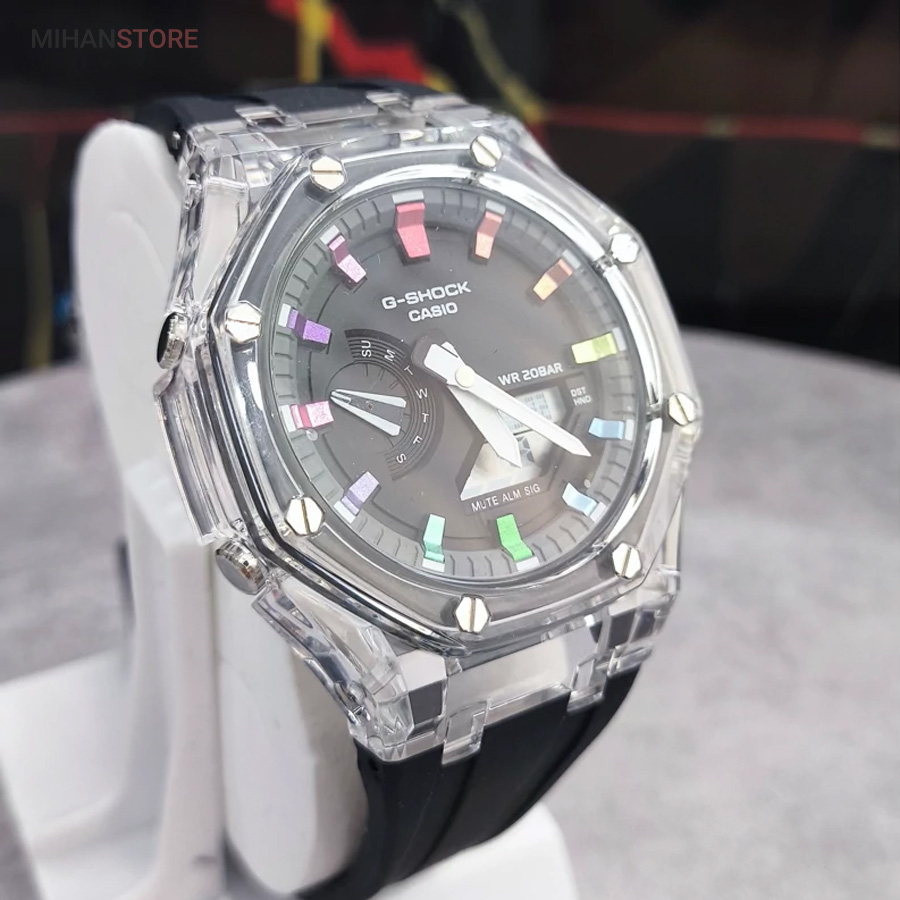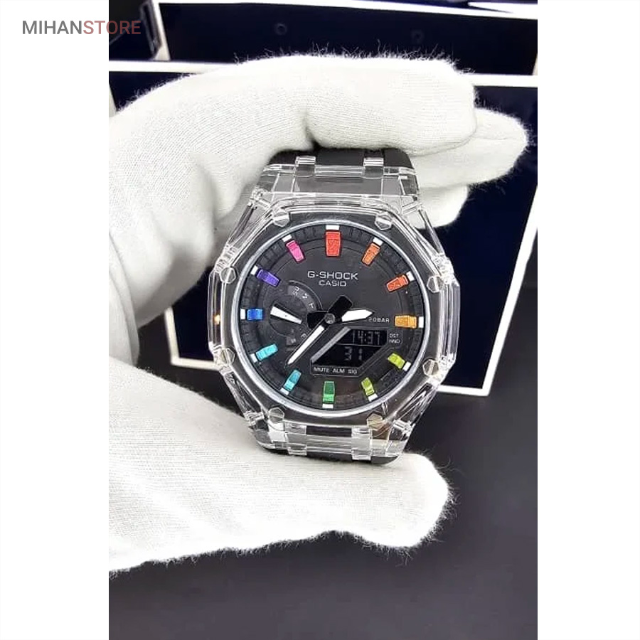 یکی از بهترین ساعت هایی که کمپانی کاسیو تولید می‌کند و از زمانی که ساعت‌های کالکشن جی شاک به بازار معرفی شد ساعت جی شاک مدل GA2100 می باشد، کاسیو برای بار دیگر کاربران خود را به چالش کشید. مدل های جی شاک ، با ظاهر و طراحی مقاوم و منحصر به فرد خود، به محبوبیت بین المللی در بین جوانان رسید. ساعت‌هایی با قدرت ضربه‌پذیری بالا، مقاومت بالا در برابر آب و ضربات محکم که توانست نظر بسیاری از افراد را به خود جلب کند. ساعت مچی جی شاک دارای بند رابر مشکی خاص وموتور باکیفیت ژاپن وبدنه استیل وقاب شیشه ای جذاب است که بهترین انتخاب افراد خاص پسند می باشد.