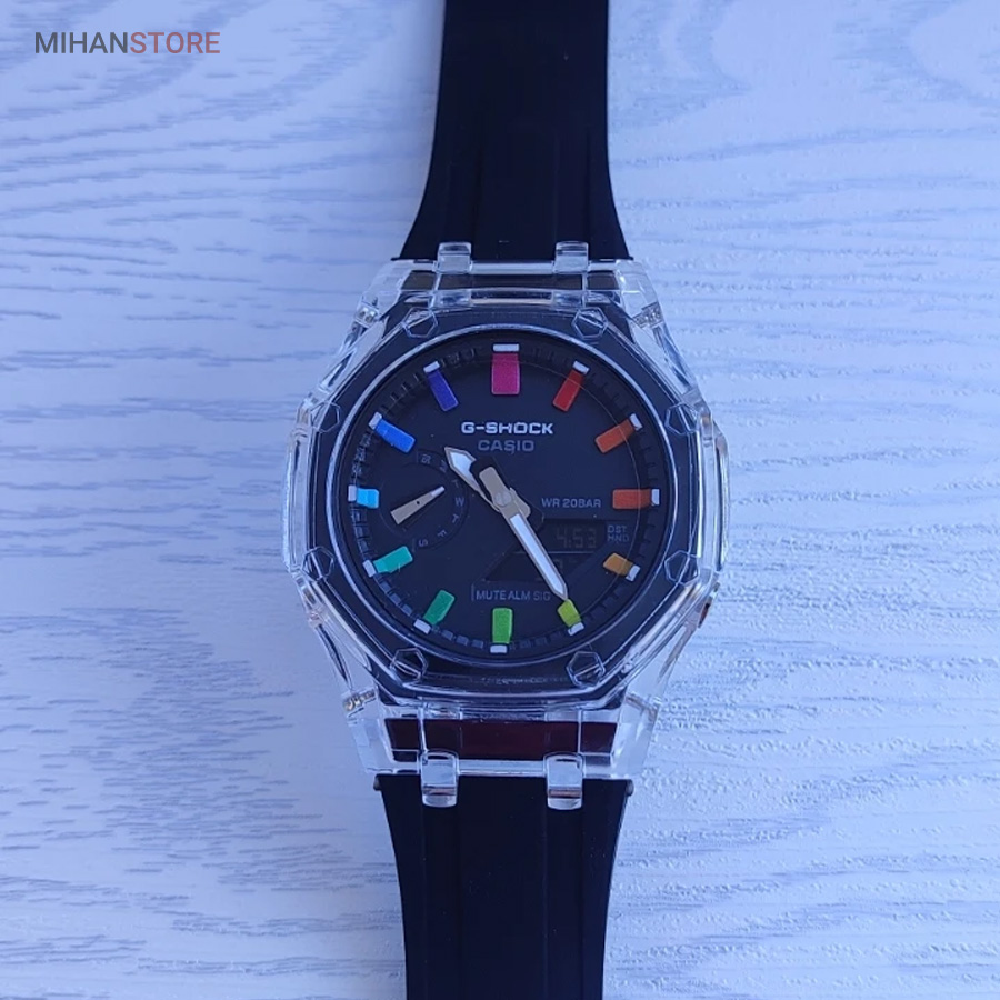 یکی از بهترین ساعت هایی که کمپانی کاسیو تولید می‌کند و از زمانی که ساعت‌های کالکشن جی شاک به بازار معرفی شد ساعت جی شاک مدل GA2100 می باشد، کاسیو برای بار دیگر کاربران خود را به چالش کشید. مدل های جی شاک ، با ظاهر و طراحی مقاوم و منحصر به فرد خود، به محبوبیت بین المللی در بین جوانان رسید. ساعت‌هایی با قدرت ضربه‌پذیری بالا، مقاومت بالا در برابر آب و ضربات محکم که توانست نظر بسیاری از افراد را به خود جلب کند. ساعت مچی جی شاک دارای بند رابر مشکی خاص وموتور باکیفیت ژاپن وبدنه استیل وقاب شیشه ای جذاب است که بهترین انتخاب افراد خاص پسند می باشد.