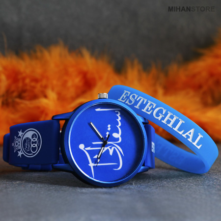 ست ساعت و دستبند طرح استقلال یک ساعت فوق العاده و از سری ساعت های فانتزی می باشد. ست ساعت و دستبند طرح استقلال دارای لوگوی این باشگاه بر روی بند ساعت و به رنگ آبی می باشد، که دارای صفحه ای آبی رنگ بوده که به صورت گرد تولید شده است و درون این صفحه طرح آبی استقلال ام با رنگ سفید کار شده است. بند سیلیکونی و قاب فلزی این ساعت هیچ گونه حساسیتی برای پوست شما ایجاد نمی کند. ساعت مچی استقلال ویژه هواداران واقعی تیم محبوب و پرطرفدار استقلال طراحی شده است. بنابراین اگر هوادار واقعی استقلال هستید به هیچ وجه ست ساعت و دستبند طرح استقلال را از دست ندهید یا عنوان هدیه ای ارزشمند برای هواداران این تیم استفاده نمایید.