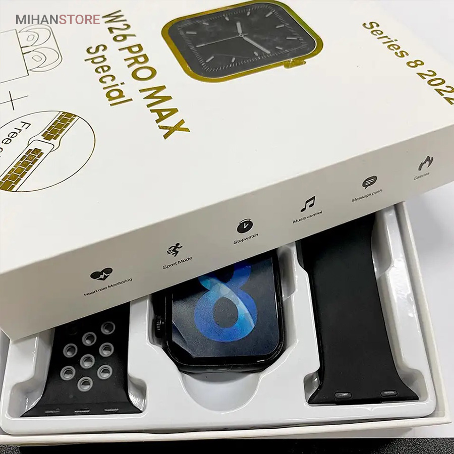 ساعت هوشمند W26-ProMax Special یک محصول کامل و کاربردی است که با ترکیب ویژگی‌های هوشمند و امکانات پیشرفته، تجربه کاربری فوق‌العاده‌ای را در اختیار شما قرار می‌دهد. این ساعت هوشمند از طراحی زیبا و مدرنی برخوردار است که نه تنها در نگاه اول شما را مجذوب خود می‌کند، بلکه با داشتن عملکرد بسیار کارآمد و عملی نیز می‌تواند نیازهای روزانه شما را به خوبی برطرف سازد. یکی از برجسته‌ترین ویژگی‌های این ساعت هوشمند، داشتن سنسورهای پیشرفته برای پایش فعالیت‌های ورزشی و سلامتی است. این سنسورها به‌صورت دقیق و لحظه‌ای میزان ضربان قلب، تنفس، خواب و دیگر جنبه‌های سلامت شما را رصد می‌کنند و در اختیار شما قرار می‌دهند. بنابراین با استفاده از این ساعت هوشمند، می‌توانید به‌راحتی از وضعیت سلامت خود مطلع باشید و در صورت نیاز اقدامات لازم را انجام دهید. علاوه بر این، ساعت هوشمند W26-ProMax Special به‌عنوان یک دستیار دیجیتال همیشه همراه، قابلیت‌های فراوانی برای کنترل و مدیریت زندگی روزانه شما دارد. به‌عنوان مثال، می‌توانید با یک ضربه ساده بر روی صفحه، اعلان‌ها و پیام‌های گوشی همراه خود را مشاهده کنید و به‌سرعت به آن‌ها پاسخ دهید. همچنین قابلیت کنترل موسیقی و پخش فایل‌های صوتی از طریق این ساعت هوشمند، تجربه لذت‌بخشی از شنیدن موسیقی را در اختیار شما قرار می‌دهد. ویژگی منحصربه‌فرد دیگر این ساعت هوشمند، همراهی آن با یک هدفون بلوتوثی است. این هدفون‌های با کیفیت بالا، امکان لذت بردن از موسیقی و پاسخ‌گویی به تماس‌های تلفنی را در هر زمان و مکان به شما می‌دهند. بنابراین با داشتن این مجموعه کامل ساعت هوشمند و هدفون بلوتوثی، شما قادر خواهید بود از تمامی امکانات و قابلیت‌های آن‌ها در زندگی روزمره خود بهره مند شوید. به طور کلی، ساعت هوشمند W26-ProMax Special را می‌توان یکی از پیشرفته‌ترین و کامل‌ترین محصولات موجود در بازار دانست که با ادغام فناوری‌های به‌روز و تجربه کاربری عالی، به شما این امکان را می‌دهد تا در هر لحظه به دنیای دیجیتال خود متصل باشید و از آن لذت ببرید.