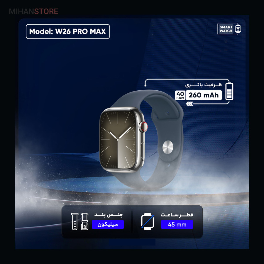 ویژگی های ساعت هوشمند و هندزفری بلوتوث W26 Pro Max :